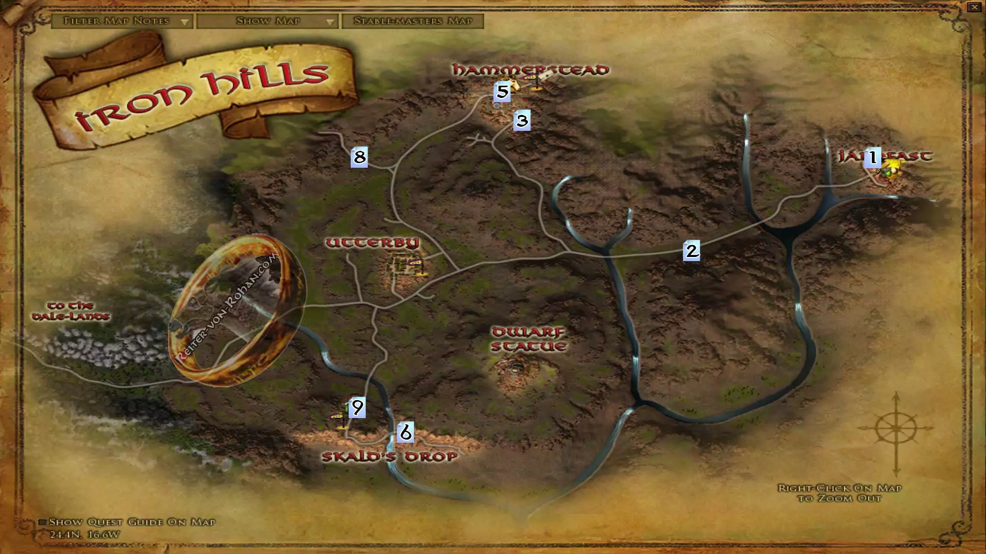 Die Markierungen auf der Karte zeigen den ungefähren Bereich des Fundortes an und müssen daher nicht immer zu 100 % richtig sein! Zudem kann es untrer Umständen sein, dass du dir das Gebiet / Questpack im HdRO Shop kaufen musst, um die Taten zu erhalten / vervollständigen.Damit du die von mir oben genannten Koordinaten leichter zu finden kannst, empfehle ich dir Folgendes Plugin - Way Point