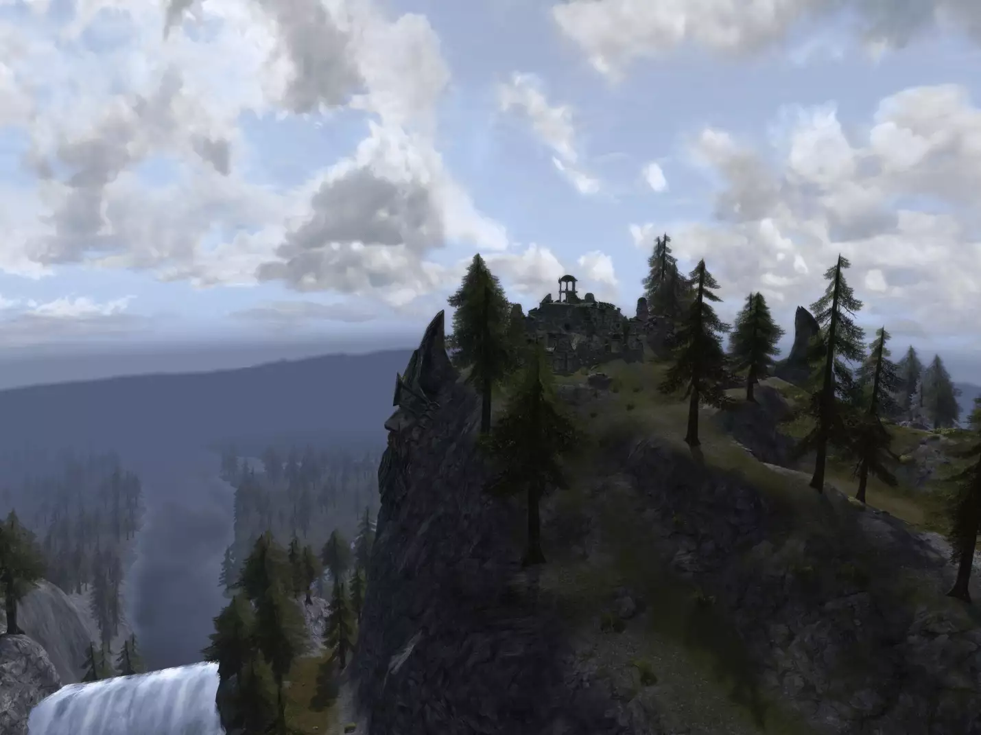 Es brauchte eine geraume Weile und viel Feinarbeit an unserer Software für die Landschaftserstellung (und, zugegeben, auch einige Flüche), um die Konturen der Mark herauszuarbeiten, damit alles so zusammenpasste, wie es Tolkien mehr oder weniger genau beschrieben hatte - aber nun haben wir es, so glaube ich, geschafft. (Ich habe die gesamte Mark in ihren Grundzügen entworfen, weil eines zum anderen passen und sich nahtlos anschließen muss, wenn man später keine bösen Überraschungen erleben will, außerdem soll man ja etwas jenseits des Entwasser-Flusses sehen können). Ihr könnt von einem Ende Ost-Emnets zum anderen reiten, in jede Richtung, ohne befürchten zu müssen, plötzlich und unerwartet mitsamt Eurem Kriegsross von einer steilen Klippe zu fallen. Ihr könnt auch dem Großen Fluss bis nach Amon Hen folgen, den Ausblick vom Sitz des Sehens genießen, der so majestätisch und erhaben ist, wie Ihr ihn Euch vorgestellt habt, und dann dem Weg Merrys und Pippins die Klippen des Ostwalls hinunter nachgehen, bis Ihr auf die Ebenen kommt.