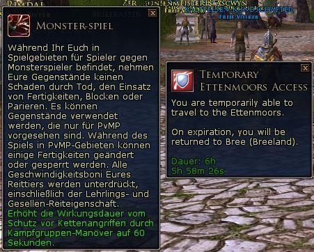 Wenn der Buff ausgelaufen ist, werdet ihr automatisch aus die Ettenöden geportet. In meinem Fall landete ich dann in Bruchtal beim Stallmeister. Etten-Pass ist vergleichsweise teuer. Wer mehr als 25-40 Stunden in den Etten (im Monat) unterwegs sein will, für den ist das 1-Monats-Abo immer noch billiger. Für Jahres-Abonnenten lohnt es sich schon bei ca. 12 Stunden im Monat (wenn man die 500 TP vom Abo-Preis abzieht